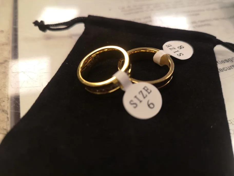 Кольца супер, выглядят убедительно, всё как на фото и описании. С гравюрой имени, как я и просила. Продавец ответил очень быстро. С размером я угадала, на свой 16 выбрала 6 и у мужа21. 5 выбрала 12 рекомендую. Посмотрим, как будет выглядеть через месяц носки.
