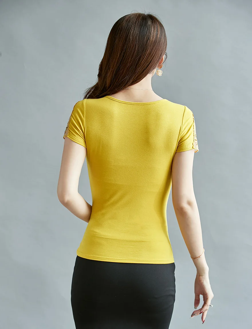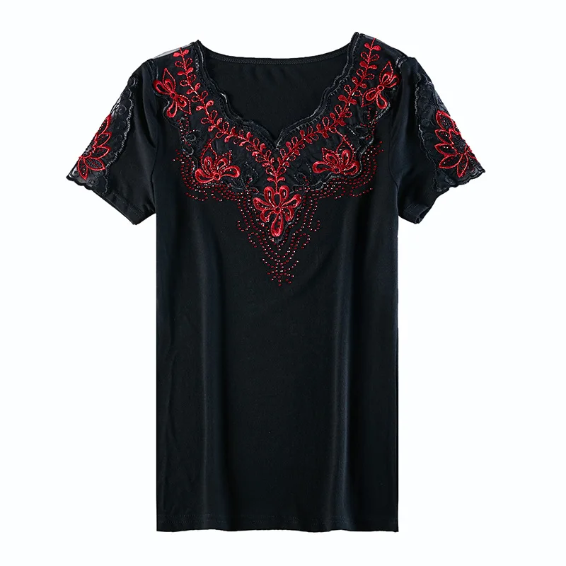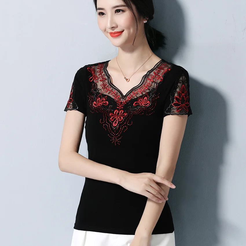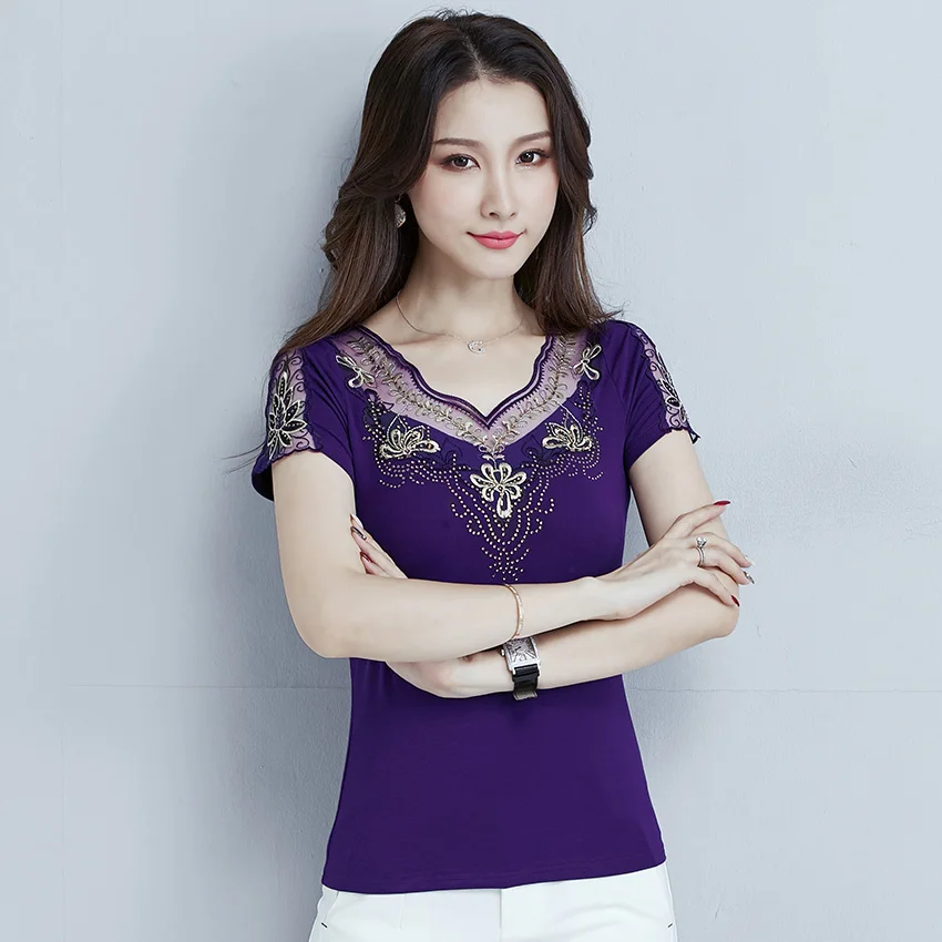 Модная женская футболка, новинка 2021, сетчатые Топы с коротким рукавом, элегантная женская рубашка с вырезами и бриллиантами, блузы