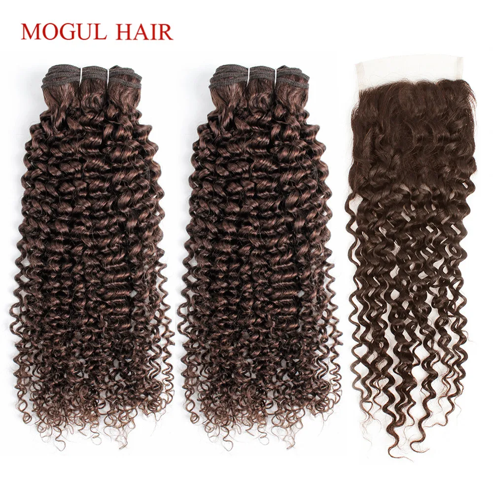 Пупряди кудрявых волос MOGUL с застежкой, 23 пучка с застежкой 4x4, темно-коричневые, натуральные волосы Реми для наращивания