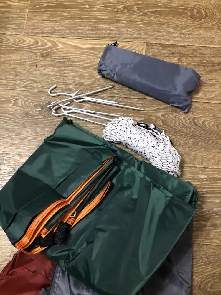1 x занавесочная ткань6 x брезентовое укрытие колышки6 x брезент веревкаСумка для переноски-1 шт.