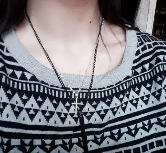 Цепочка с подвеской в виде креста, из нержавеющей стали, с золотымсеребряным покрытием