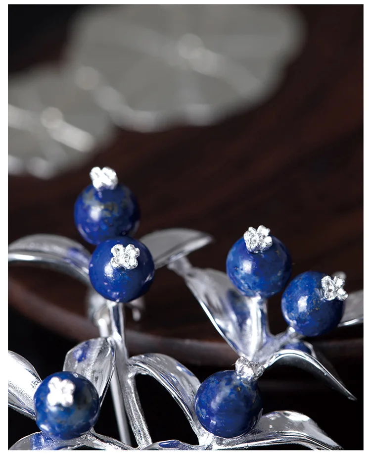 Женская Брошь в виде голубики Uglyless, брошь ручной работы в этническом стиле из 100% натурального 925 пробы, булавка в виде ветки Лапис
