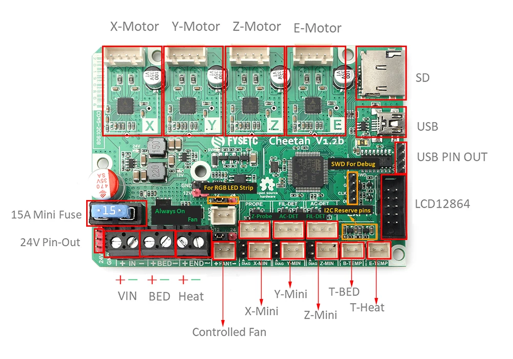 Бесшумная плата Cheetah 32bit TMC2208 UART Marlin 2,0 для CR10 Ender-3 3 Pro Ender 5 Voron v0 Voron Switchwire
