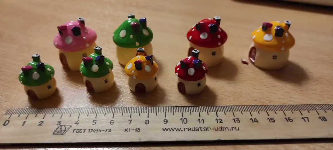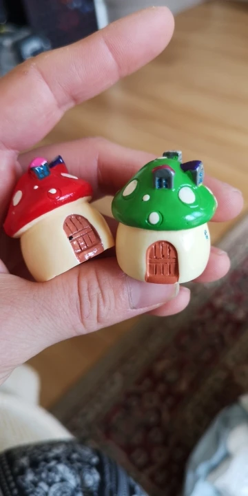 Здравствуйте... в описании продукта написано "хорошие 3 размера декоративной смолы"... и он заканчивается подарочными грибами. Но оказалось, что я получил только 1 фигурку из дома и без подарочных грибов. На фото появляются 3 смоляные украшения, я думал, что это то, что пришло ко мне. Вот почему недовольство. Спасибо, спасибо.