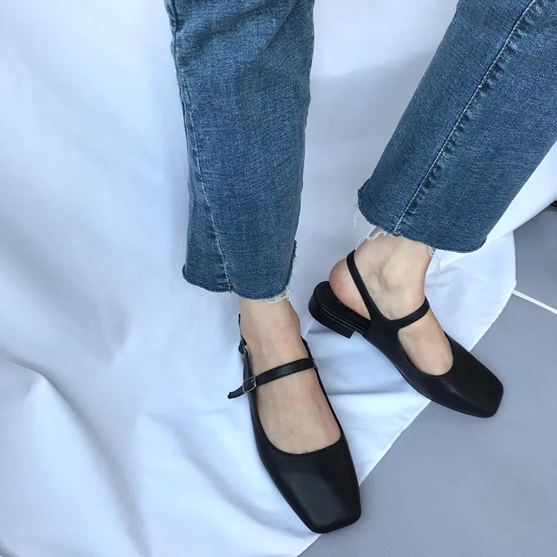 Женские босоножки без задника, с квадратным носком, на плоской подошве, весна 2019