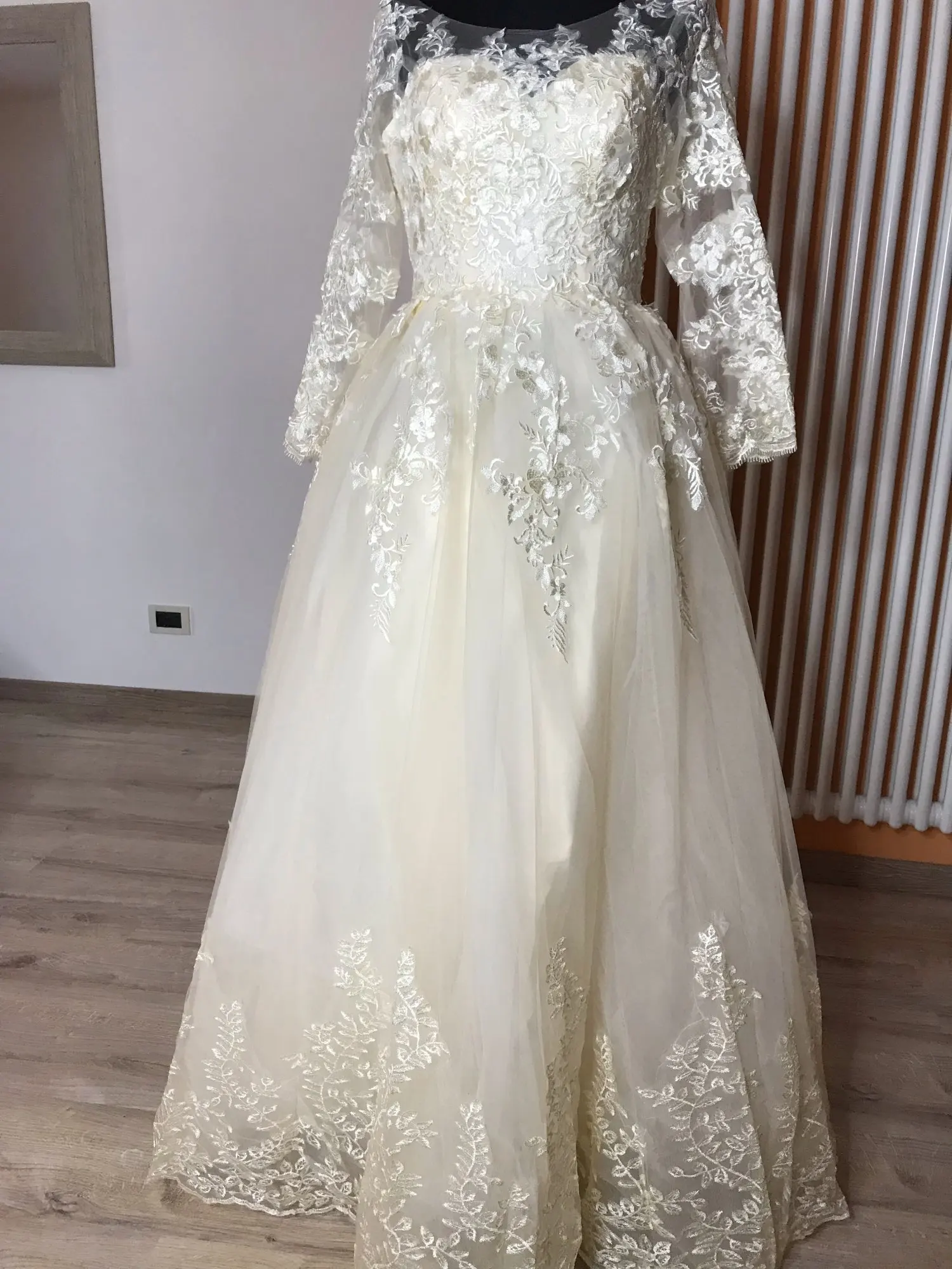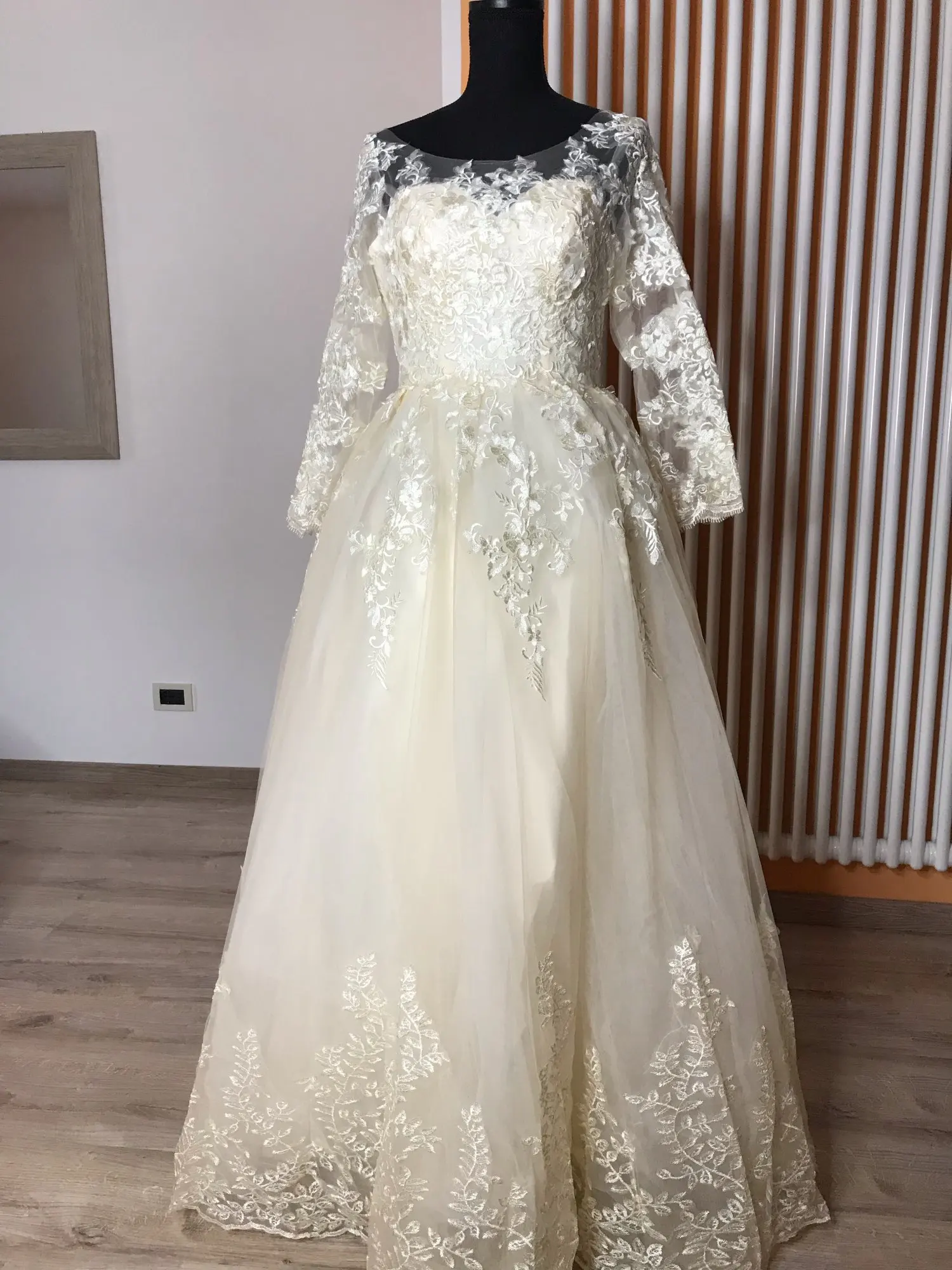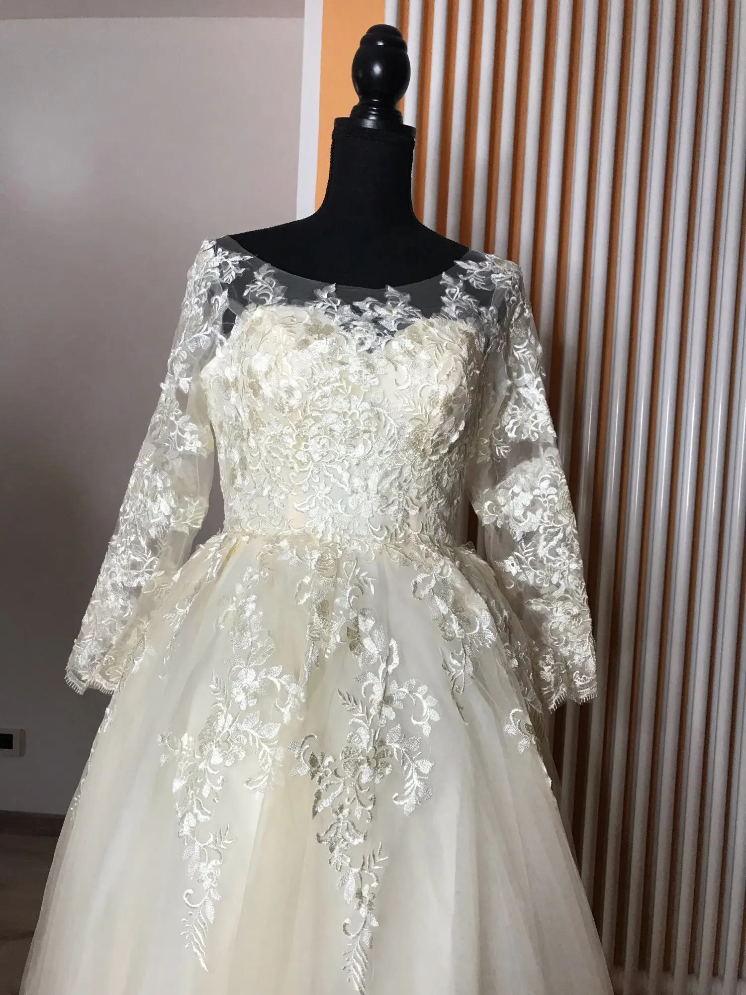 Новинка 2022, винтажное свадебное платье с круглым вырезом и длинными рукавами, иллюзионное простое кружевное платье с вышивкой на заказ, свадебное платье, свадебное платье