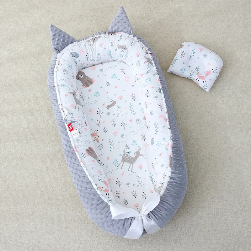 Многофункциональность-Используйте детское гнездо в качестве люльки для кровати, подушки для детского шезлонга, кровати для путешествий, подушки для новорожденных, смены места или перемещения вокруг Хо для отдыха или животика, делает ребенка более безопасным и уютным.