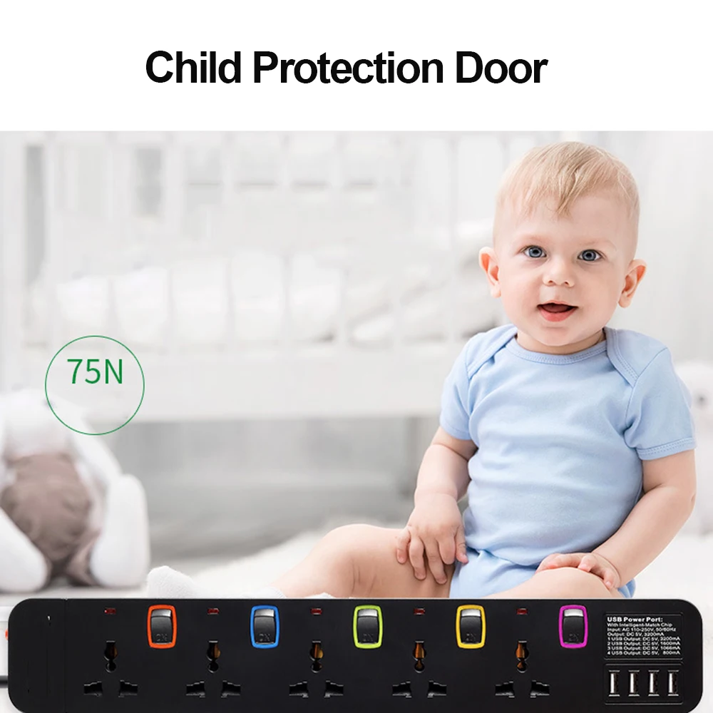 Высококачественный автоматический выключатель был собран для защиты от перегрузки; Эта полоса питания автоматически отключит питание, когда рабочий ток превышает номинальный ток, предотвращает перегрузку цепей и защищает устройства от шипов, огня или других небезопасных случаев
