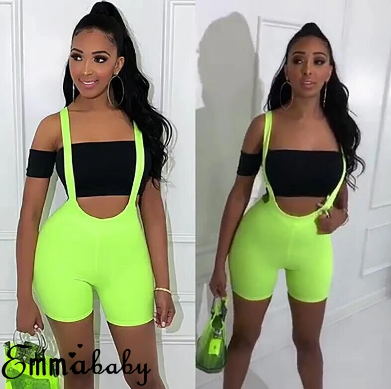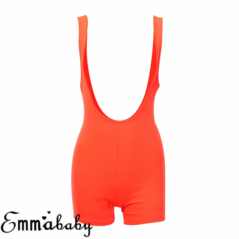 Модная сексуальная Женская Повседневная Клубная одежда, однотонные обтягивающие тонкие шорты на бретельках, комбинезон, растягивающийся Летний комбинезон