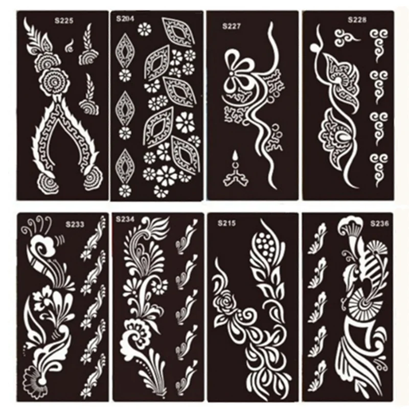 10 шт. цветок временная татуировка трафареты шаблон Mehndi хна Искусство Аэрограф Рисование одноразовые трафареты Менди шаблоны блеск