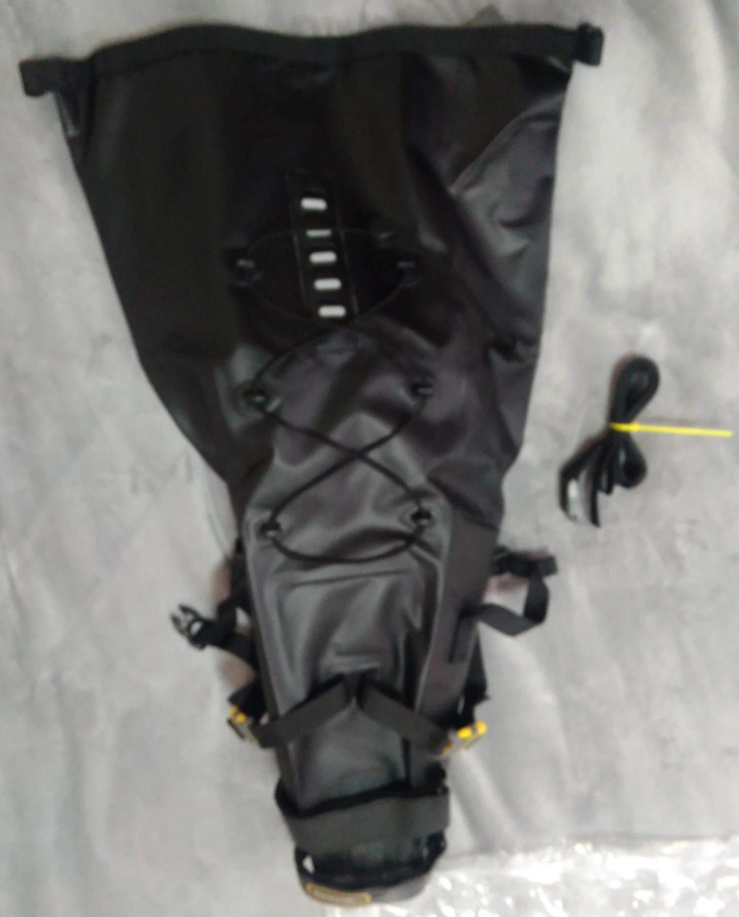 Сам пакет в порядке, но не прочный. Ремешки сшиты не очень хорошо, Они загружены в неправильном направлении и уже начали разрывать после одной езды. Также мешок много качается. Я бы не рекомендовал его. Мне придется отрезать все ремешки и увидеть их с усиленными заплатками и в правильном направлении.