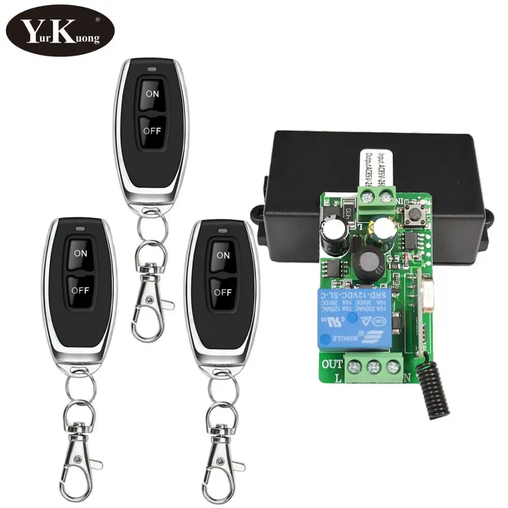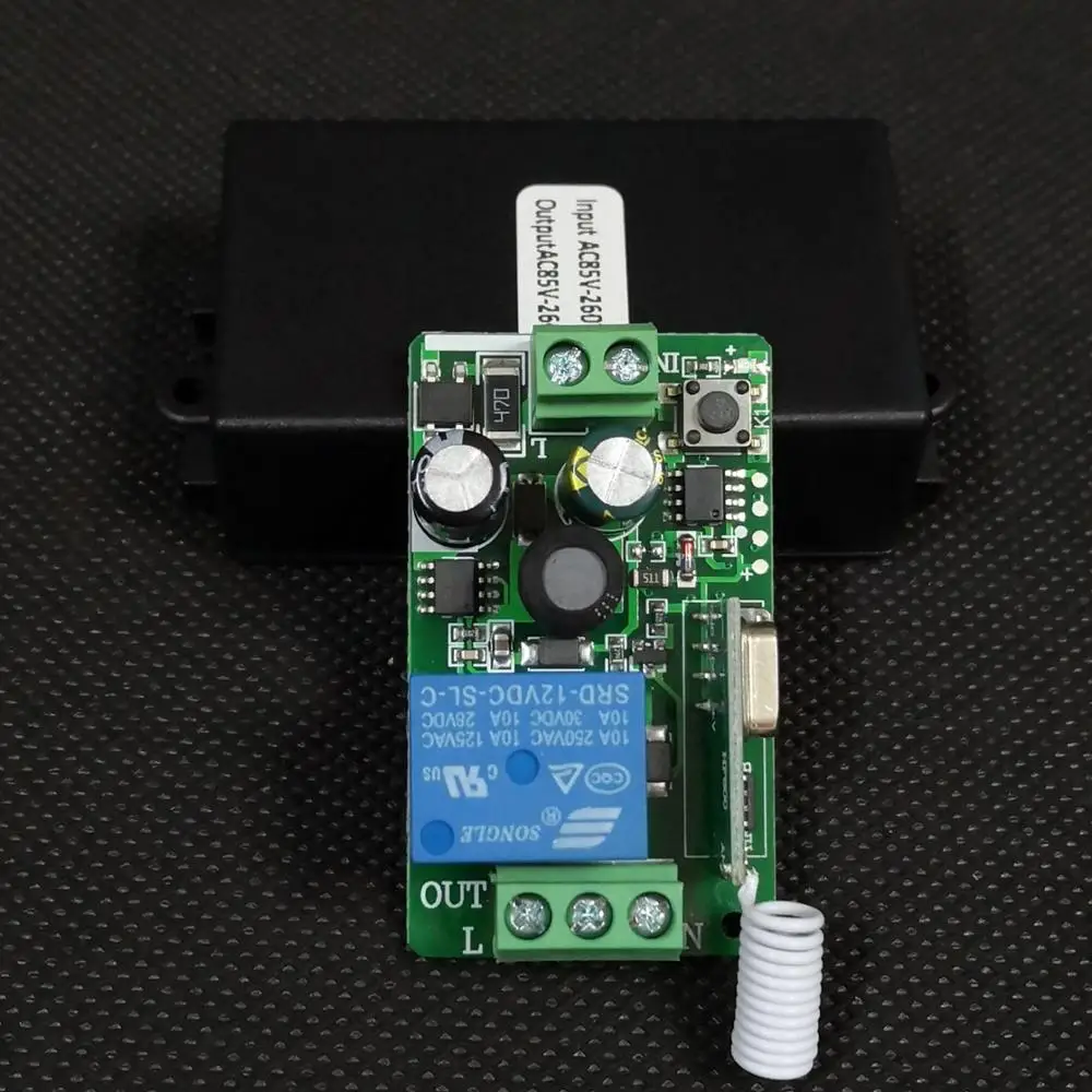Рабочее напряжение: AC85V-260V (AC85V AC100V AC110V AC120V AC220V AC230V AC240V AC260V все в порядке) Рабочая частота: 315 МГц или 433 МГц опционально Ток покоя: менее 10 мА Рабочая температура: -10 °C-+ 60 °C Чувствительность приема:-105 дБм Рабочее расстояние: 10-100 м Режим модуляции: Супергетеродин Максимальная нагрузка: реле 10 А имеет реле 10 А, резистивная нагрузка ≤ 5 А, Индуктивная нагрузка ≤ 3 А Подходящий способ: кнопка обучения для добавления передатчика Режим работы: Мгновенный/Переключение/фиксация/мгновенная задержка выключения 5s/10 с/15 с Размер платы: 55 мм * 32 мм * 17 мм Размер Чехла: 73 мм * 36 мм * 23 мм Проводка В L ------ вход AC85V-260V провод под напряжением (L) N ----- вход AC85V-260V нейтральный провод (N) OUT L ------ Ouput AC85V-260V провод под напряжением (L) N ----- выход AC85V-260V нейтрального провода (N) Моментальный ----- нажмите и удерживайте --- ВКЛ, отпустите ---- ВЫКЛ Переключатель ------- нажмите один раз ---- вкл. Нажмите еще раз-ВЫКЛ Фиксированный -------- Нажмите A ---- ВКЛ, нажмите B-----OFF Мгновенный 5s/10s/15s --------- нажмите и удерживайте --- ВКЛ, отпустите задержку 5s/10s/15s ----- ВЫКЛ. Обучающий код Вход AC85V-260V для работы приемника, Моментальный ----- нажмите кнопку обучения 1 раз, светодиодный индикатор ВКЛ, затем нажмите передатчик. Светодиодный индикатор вспышки Переключатель ----------- нажмите кнопку обучения 2 раза, светодиодный индикатор ВКЛ, затем нажмите передатчик. Светодиодный индикатор вспышки Фиксированный --------- нажмите кнопку обучения 3 раза, светодиодный индикатор ВКЛ, затем нажмите передатчик. Светодиодный индикатор вспышки Мгновенная Задержка по времени 5s/10 с/15 с ------ Нажмите кнопку обучения 4/5/6 раз, светодиодный индикатор ВКЛ, затем нажмите передатчик. Светодиодный индикатор вспышки Код Очистки Вход AC85V-260V для работы приемника, нажмите кнопку обучения 8 раз, светодиодный индикатор мигнет 6 раз, код очищен. (Примечание: Если вам нужно изменить Рабочий режим, выключите питание и снова включите, чтобы очистить код и снова изучить)
