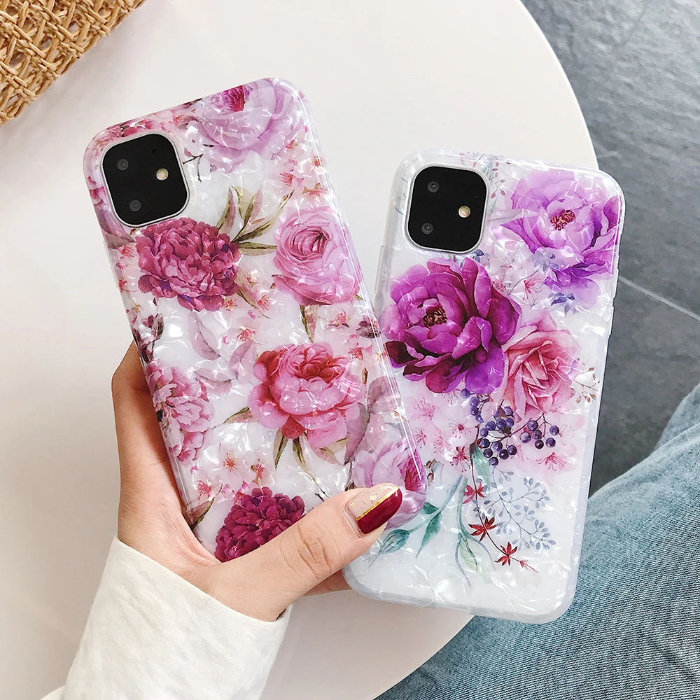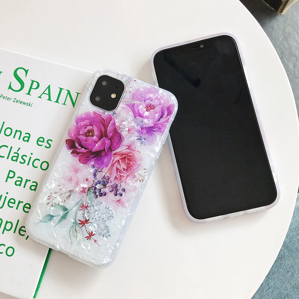 Мягкий чехол-накладка LOVECOM для iPhone 13, 12, 11 Pro Max, XR, XS Max, 7, 8 Plus, X, Dream, раковина, цветок в стиле ретро, IMD