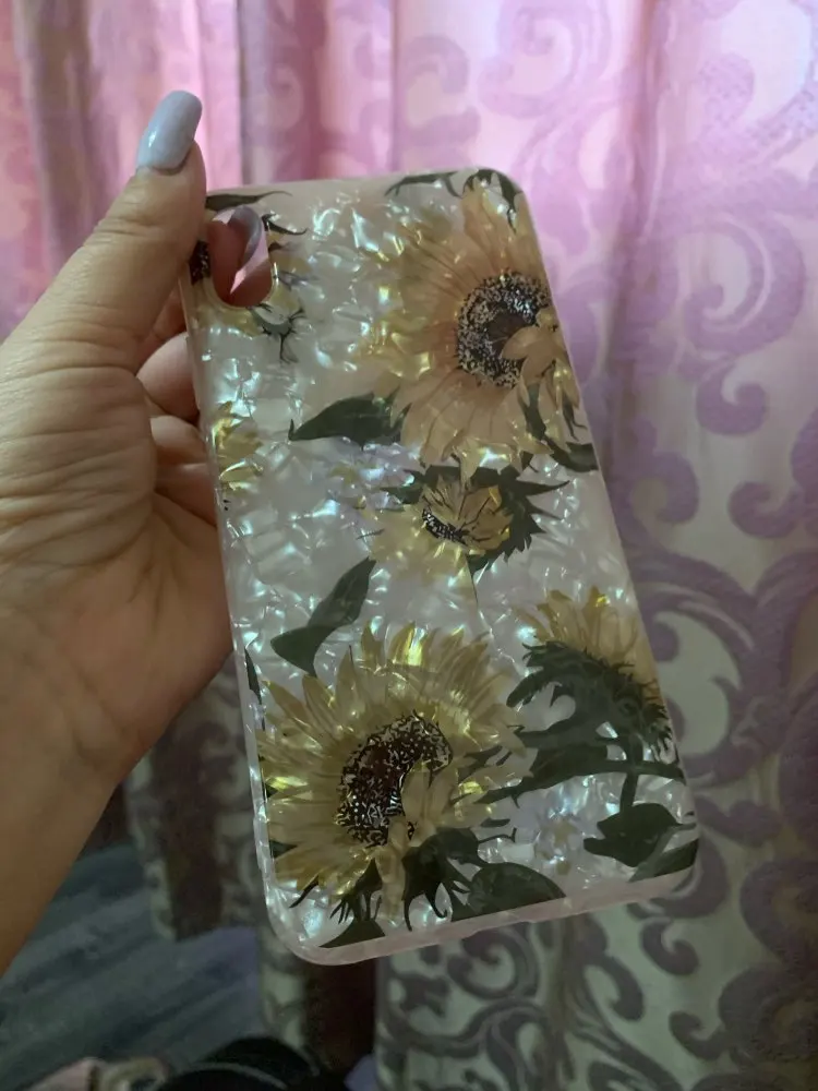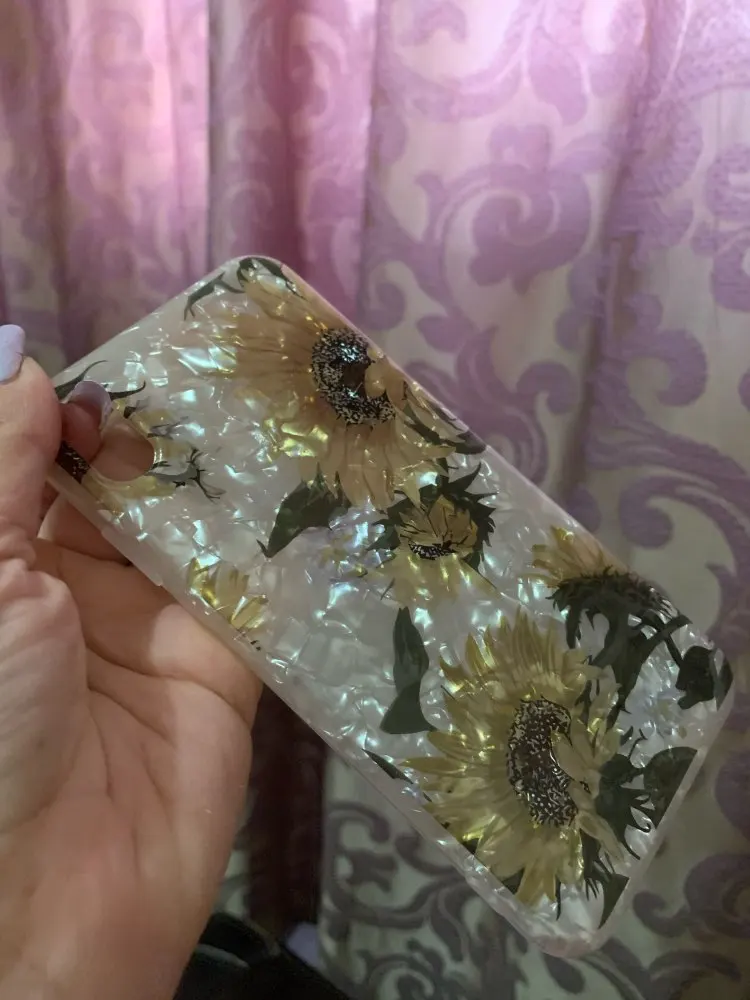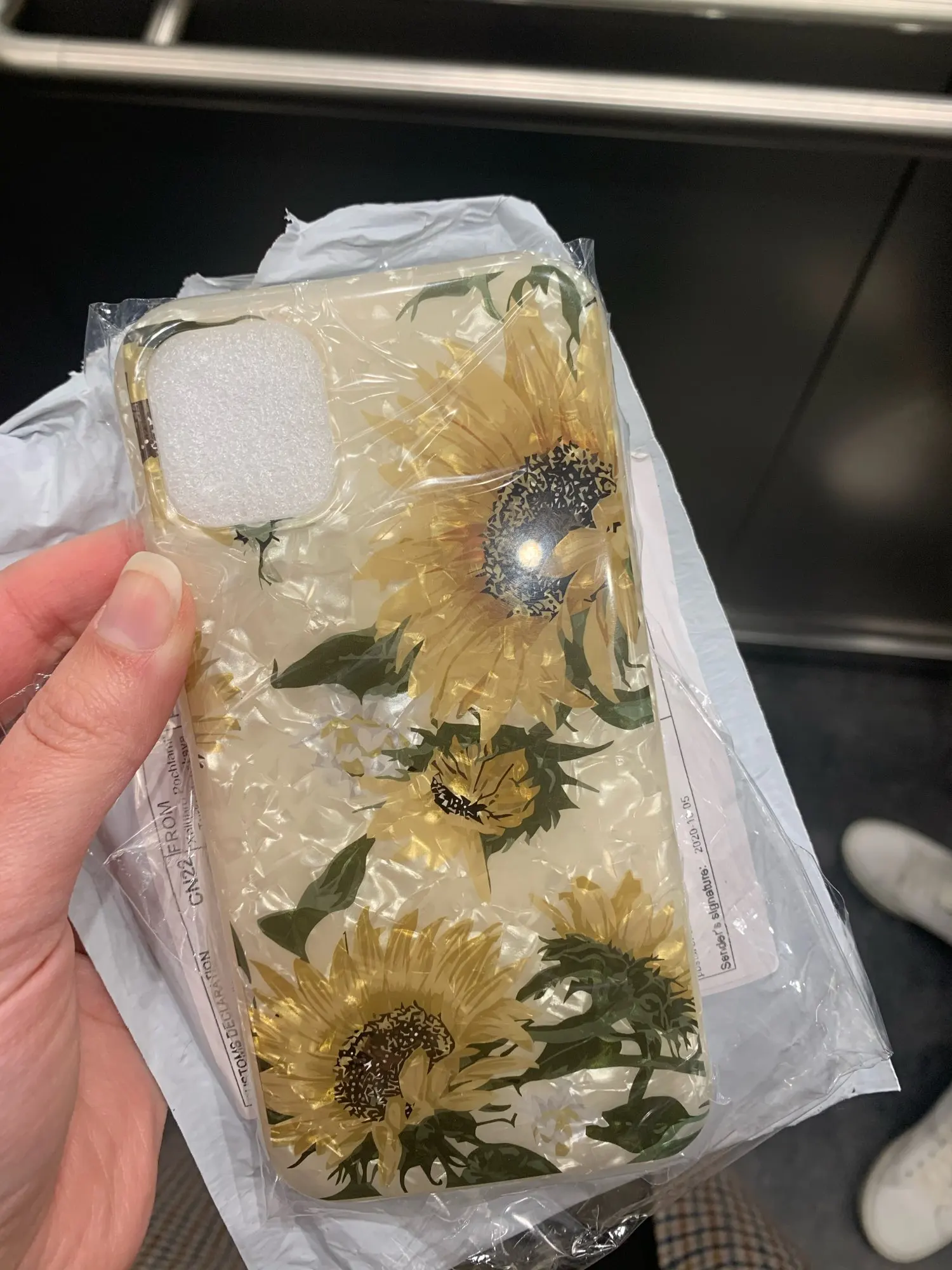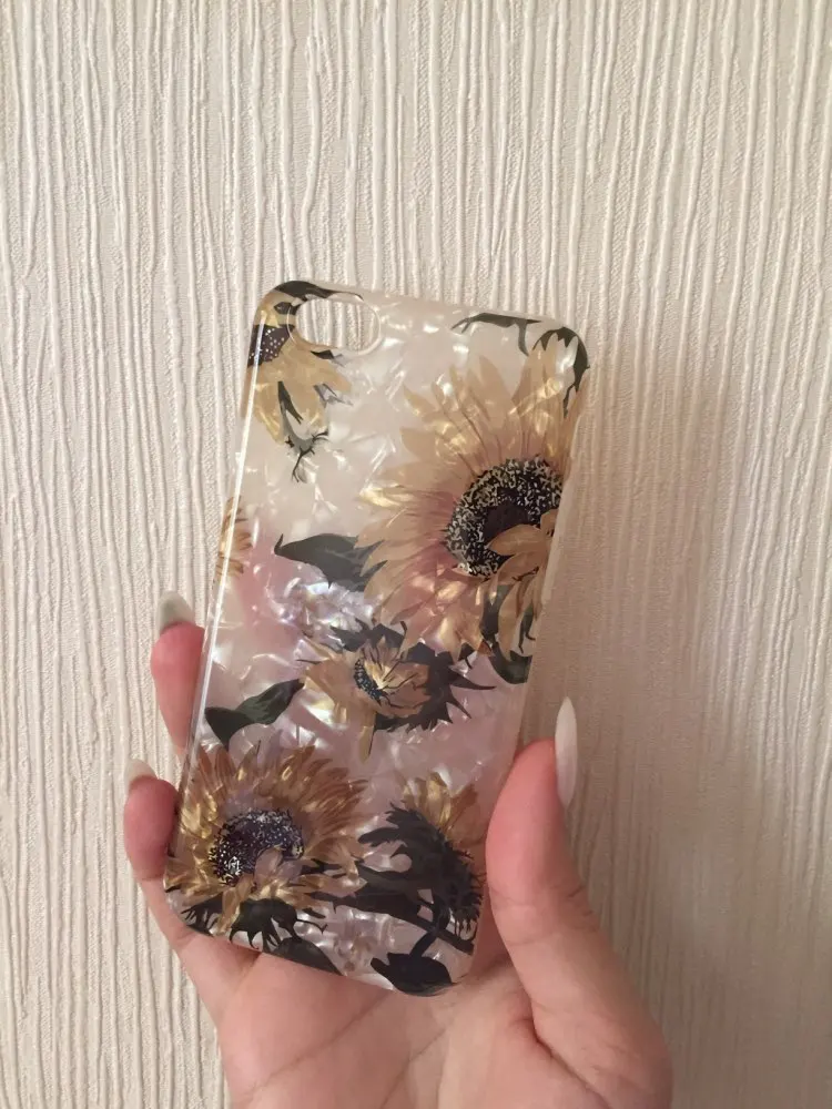 Заказала 28.08 на распродаже за 201 рубль, но заказ объединили с другими посылками и в Москву пришло 19.09. На фото продавца подсолнухи более насыщенного цвета, а в остальном неплохой чехол. Снаружи поверхность глянцевая, а внутри матовая, все вырезы ровные