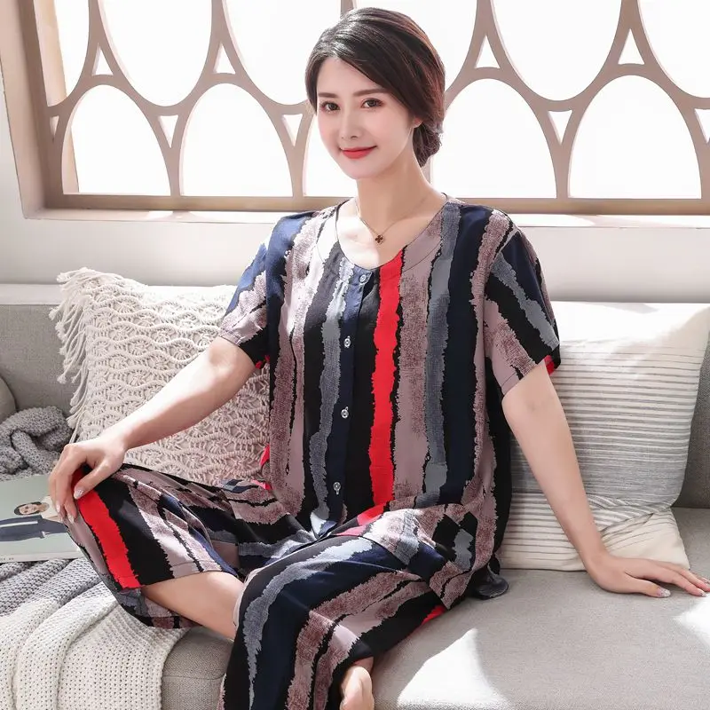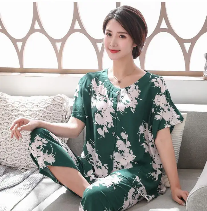 Новое поступление, Женский хлопковый пижамный комплект, Летний Тонкий цветочный комплект из 2 предметов, свободная Пижама, Повседневная Домашняя одежда, женская пижама 3XL