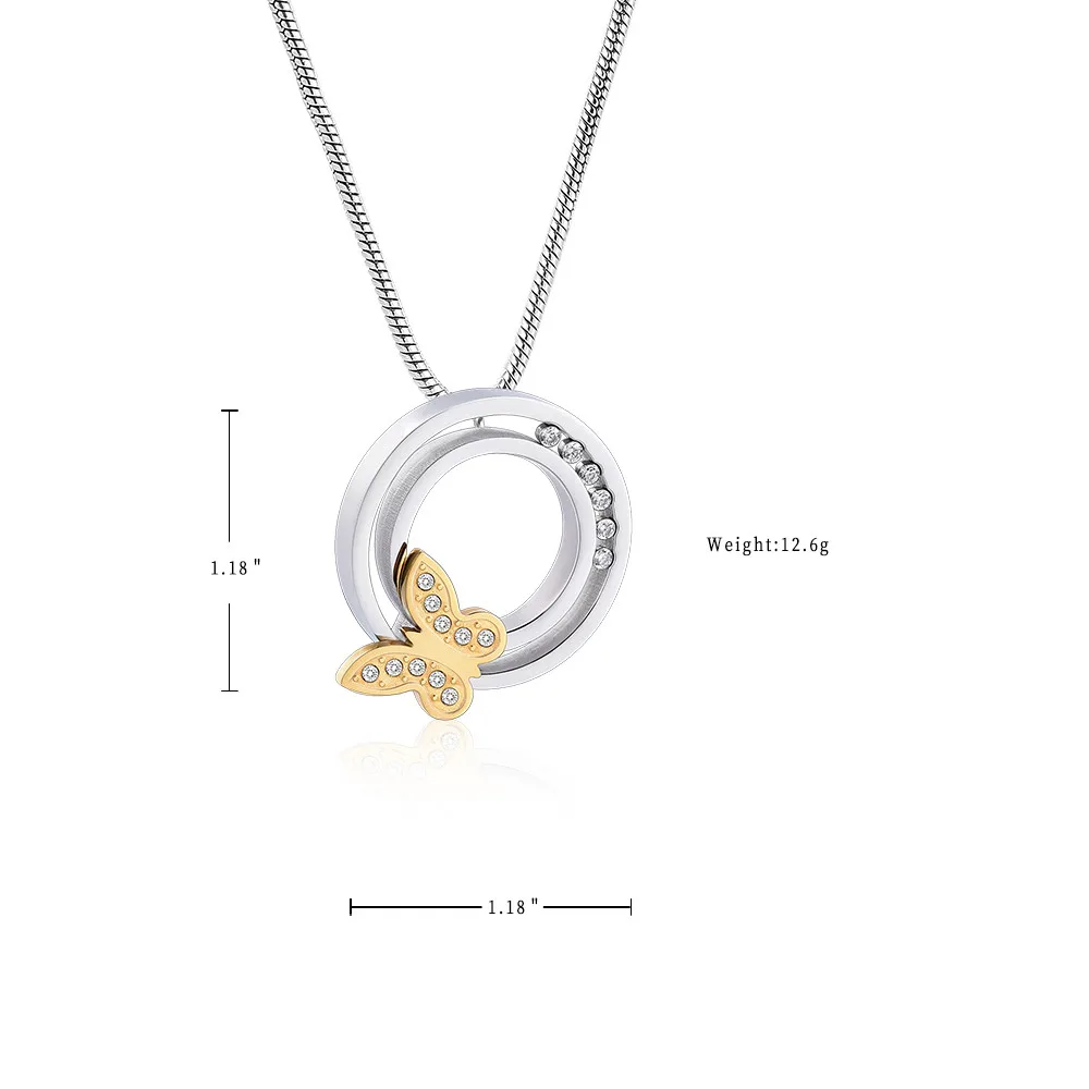 Beattiful Butterfly кулон с пеплом инкрустация Clear Zircon Circle Of Life ожерелье для кремации для женщин ювелирные изделия из нержавеющей стали