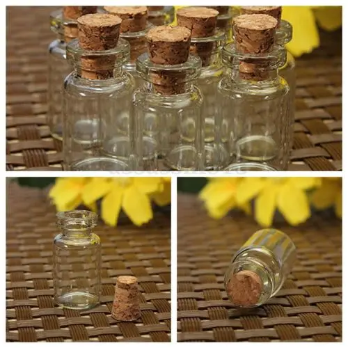 100% новый товар высокого качества. Милые маленькие стеклянные бутылки идеально подходят для различных ремесел. Можно хранить Бисер или использовать их для изготовления украшений в кулонах. Вы можете поместить сообщения в бутылку и отправить их кому-то, что вам нравится Материал: стекло/пробка Детальный Размер: 0,5 мл: 12*18*6 мм (Длина X Ширина X калибр) 1 мл: 12*24*6 мм (Длина X Ширина X калибр) 1,5 мл: 12*28*6 мм (Длина X Ширина X калибр) 2 мл: 12*35*6 мм (Длина X Ширина X калибр) 2,5 мл: 12*40*6 мм (Длина X Ширина X калибр) 5 мл: 18*40*7 мм (Длина X Ширина X калибр)
