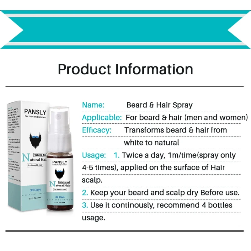 Средство для ухода за белыми волосами унисекс, тоник восстанавливает белую бороду и волосы, природный цвет волос, спрей 2019