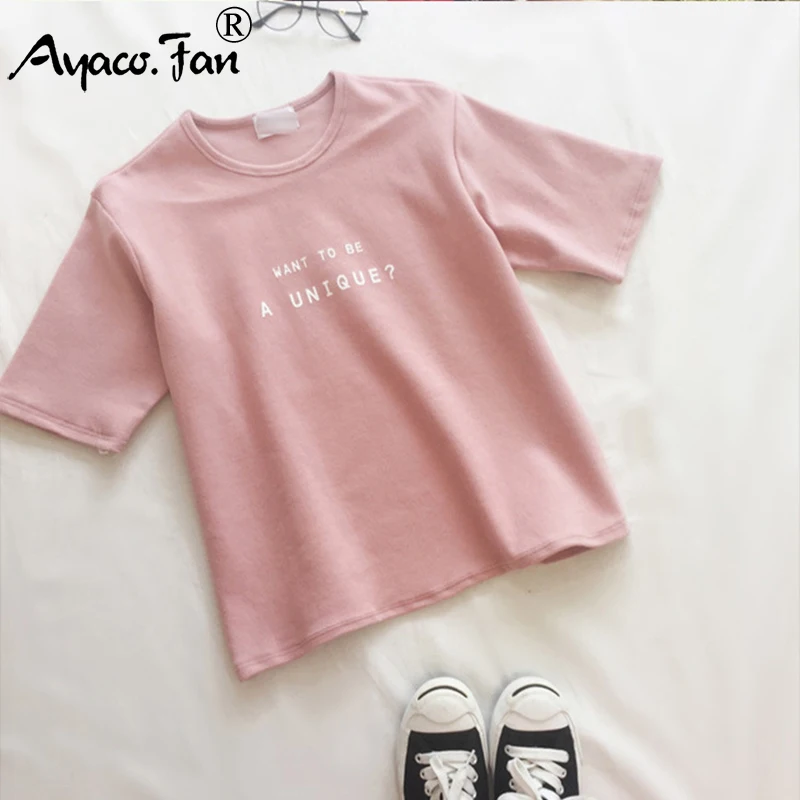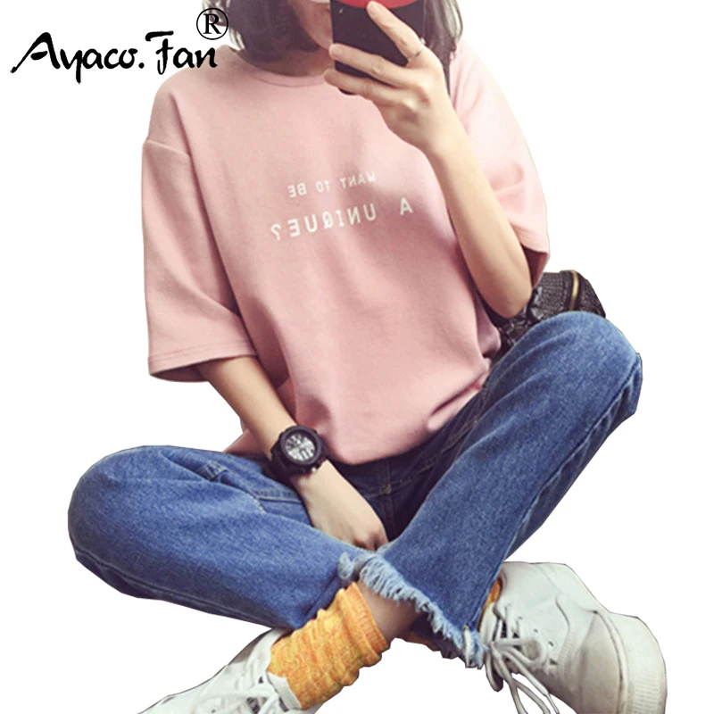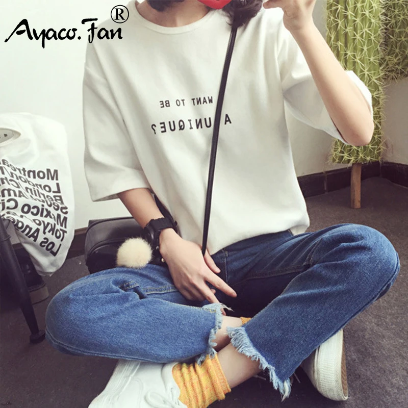 Летняя Мягкая футболка с коротким рукавом, новинка 2019, свободные женские футболки с круглым вырезом и буквенным принтом, женские футболки, повседневные топы для студентов