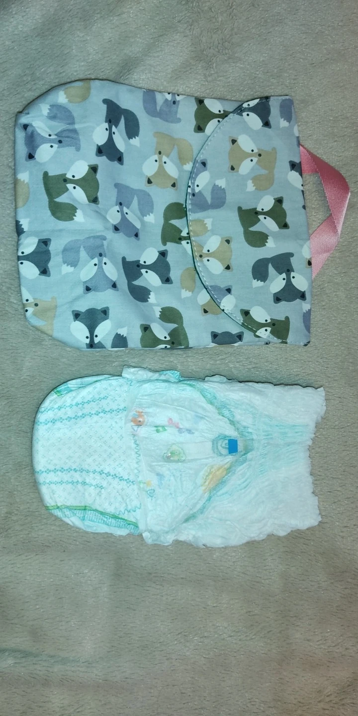 Идеальная маленькая сумка для хранения подгузников. Правильный размер, чтобы положить около дюжины слоев. Как в описании.