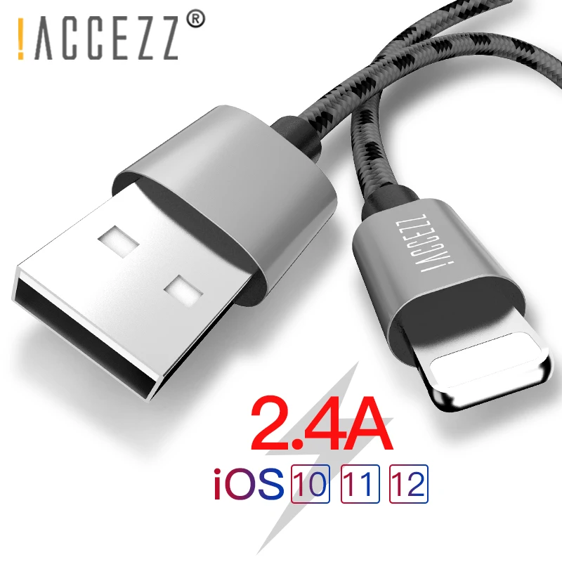 ! Кабель ACCEZZ 2.4A для Apple iPhone 5, 6, 7, 8 Plus, X, XS, MAX, XR, iPad, планшет, зарядный шнур для мобильного телефона, кабель для зарядки и передачи данных