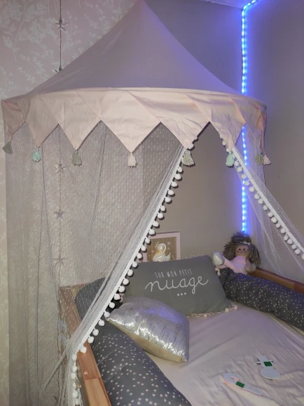 Это заняло много времени, чтобы открыть продукт, но сам шатер красивый, это был идеальный подарок на день рождения для моей дочери.