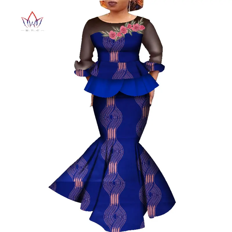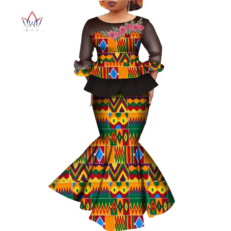Африканское платье Дашики с принтом, Короткие топы и юбка, вечерние нее свадебное платье с длинным рукавом, африканская Женская одежда, комплект с длинной юбкой WY4575