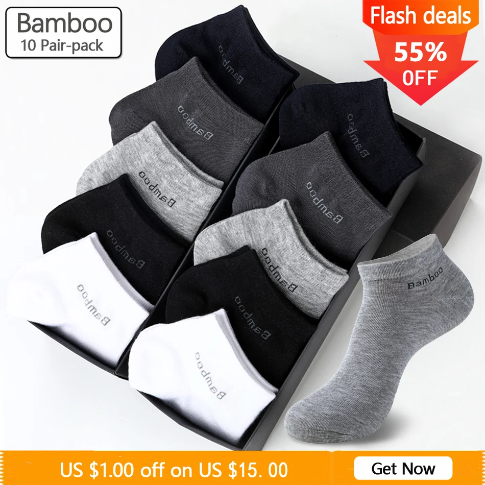 Носки мужские короткие, из бамбукового волокна, 10-парупак.