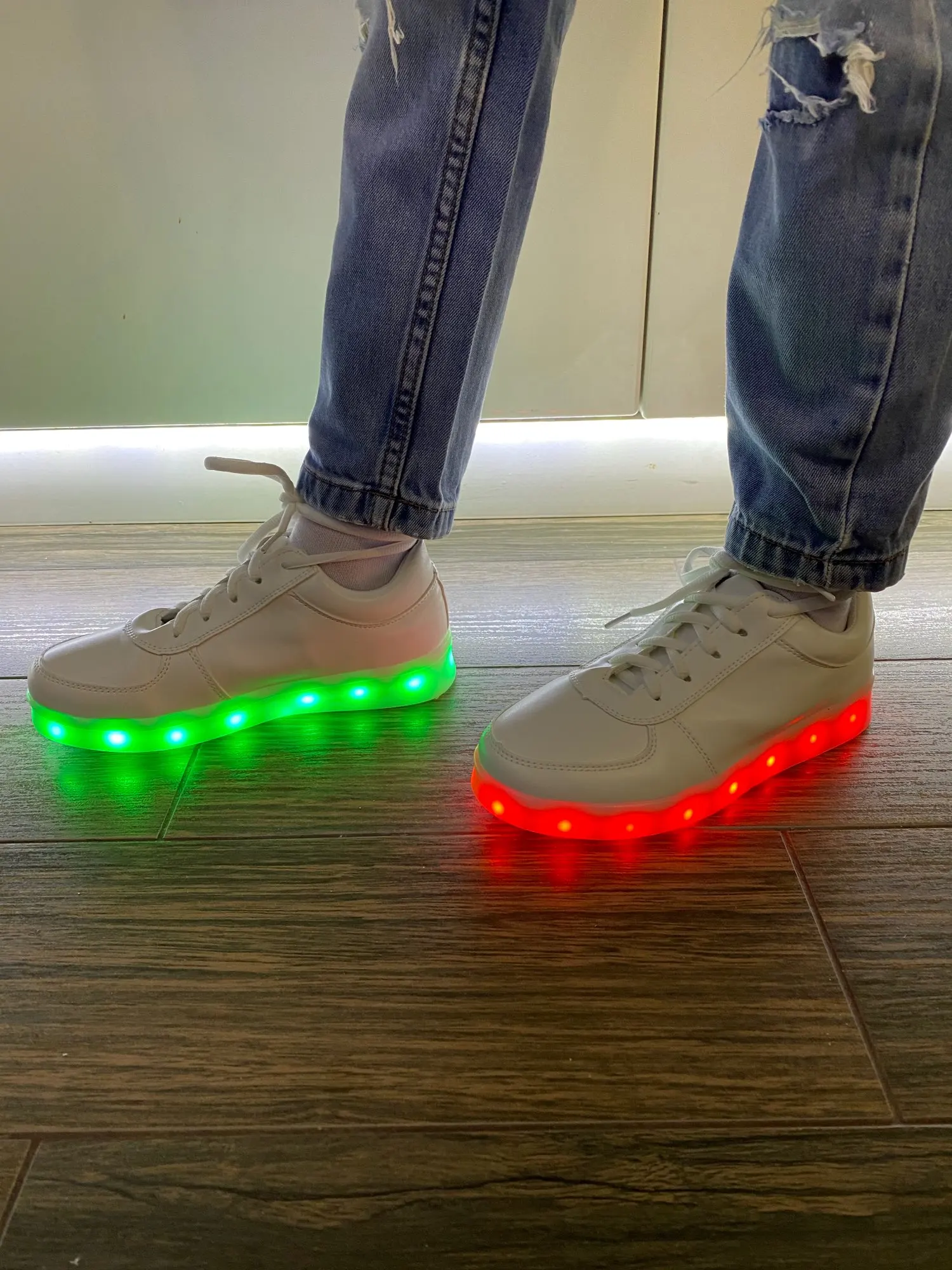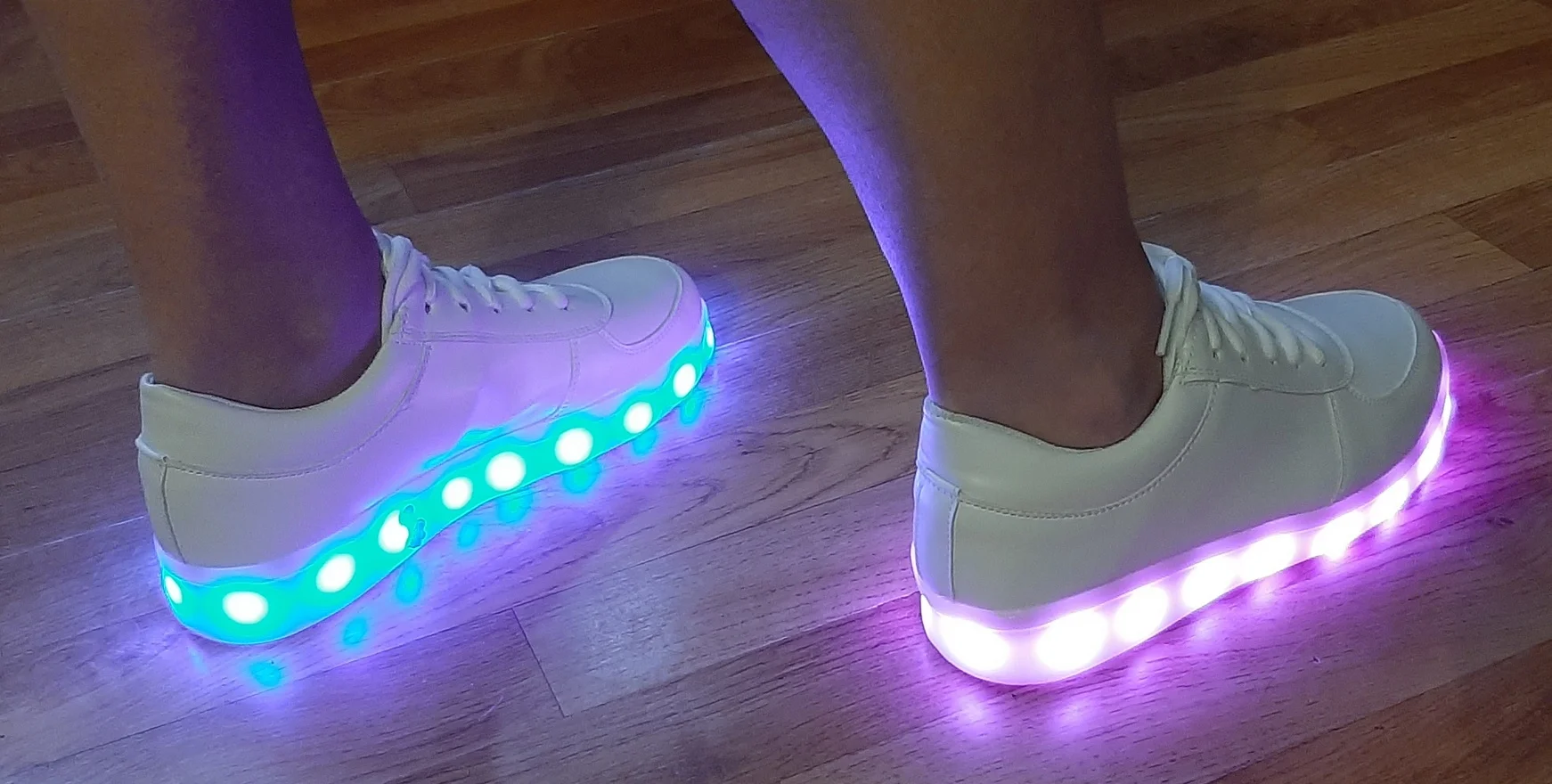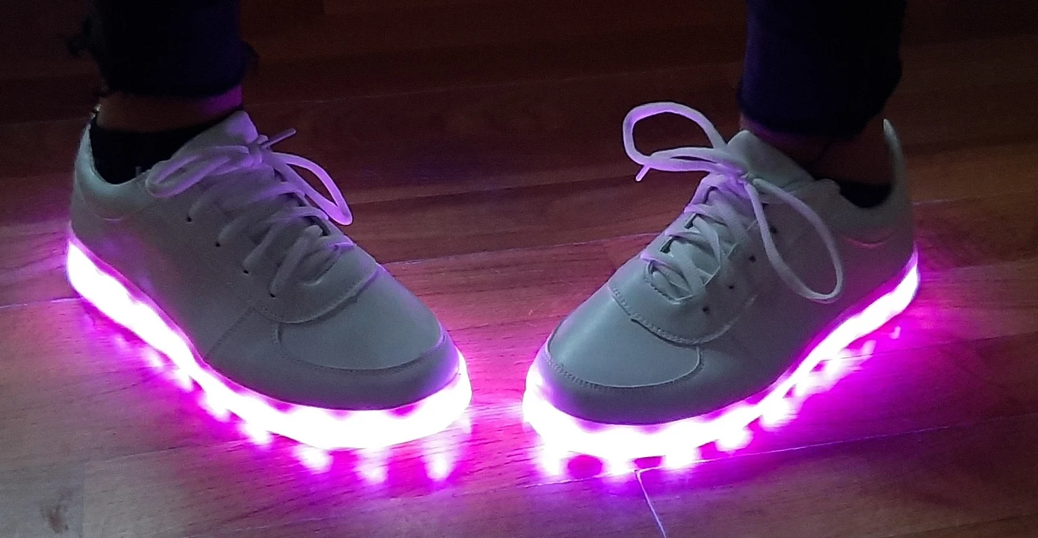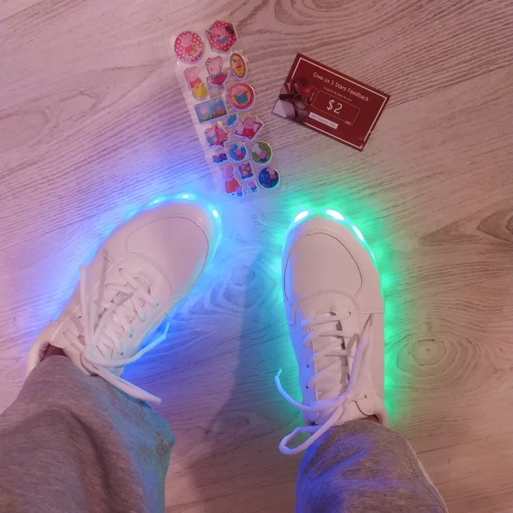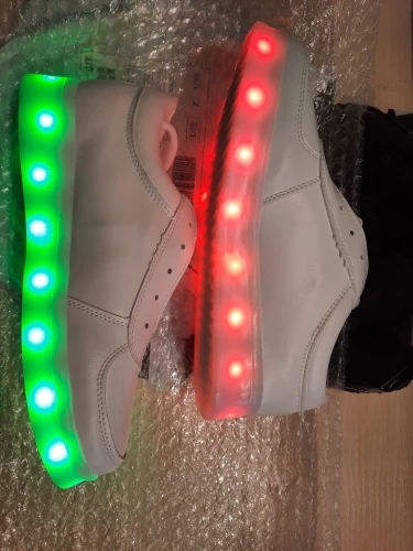 Тапочки соответствуют описанию и отображены на фотографиях. Работа светодиодов является правильной и в течение нескольких часов была полностью загружена (я думаю, что они имеют 0,5 Ач на каждой подошве). Они дают много игр для карнавала или вечеринок (также можно положить, что светодиоды не загораются). Теперь качество тапочек низкое (это малилло пластик на картонной коробке в форме кроссовок). Чтобы иметь их некоторое время и сделать шутку (что они есть) эффектно, так как светодиоды можно поместить в различные формы и цвета, оставляя кнопку в том же зарядном устройстве. По цене, которую они стоят, они в порядке.