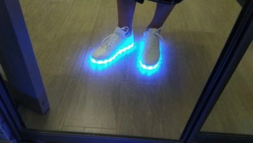 Тонкая и мягкая стелька. А в гибкой подошве сразу под стелькой поверх заложены незакреплённые тонкие провода. Даже не представляю, насколько этих лампочек хватит...