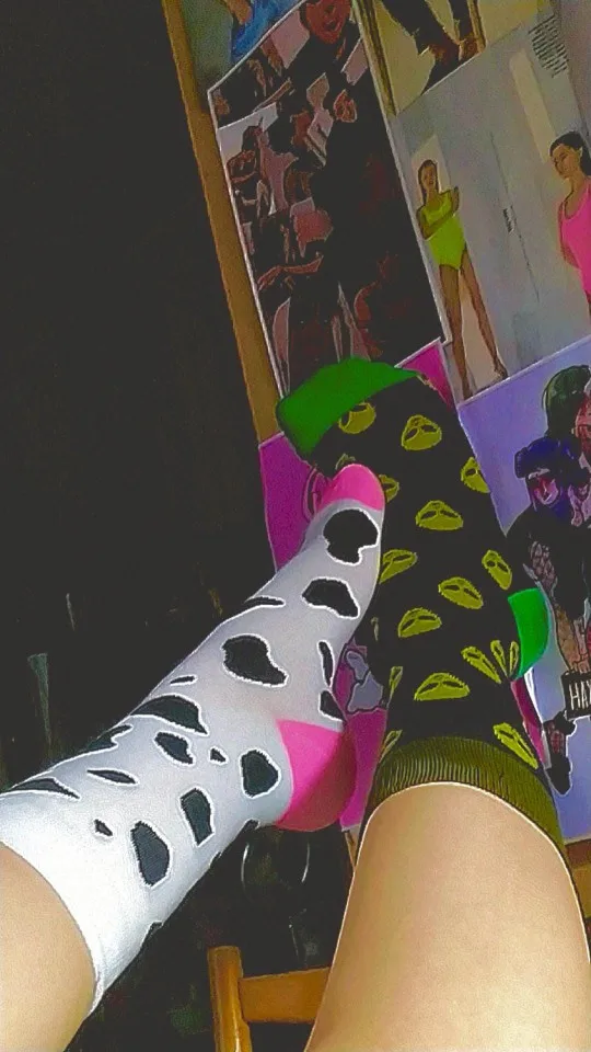 Мне очень нравятся эти носки! Я купил носки из коровьей кожи, они очень милые. Они идеально подходят мне и хорошо тянутся к ним, принт был красивым и ярким и не выцветал, они также не доставили много времени!