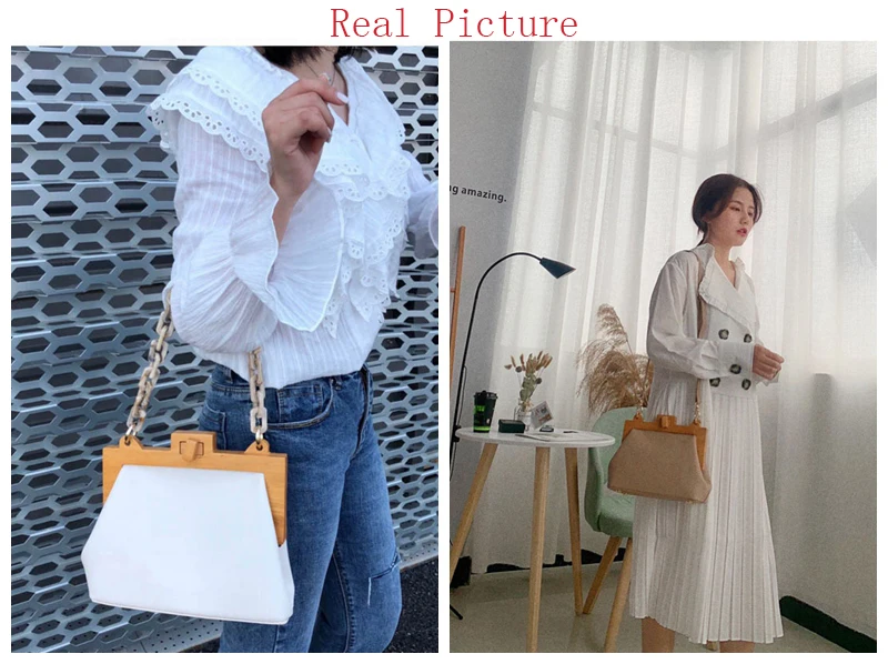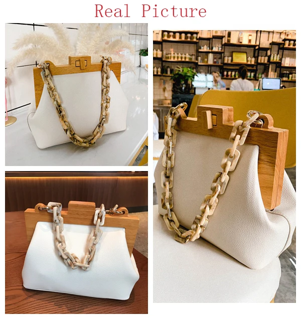 Женская сумка-ведро, вечерняя сумка с деревянным зажимом, акриловая цепочка, роскошная сумка, Женский кошелек для банкевечерние, сумка через плечо