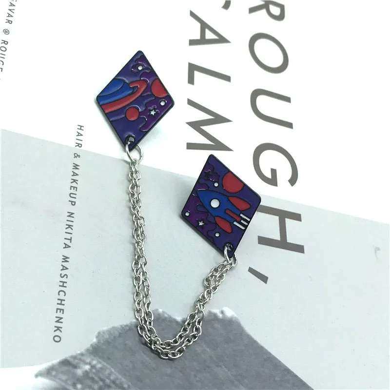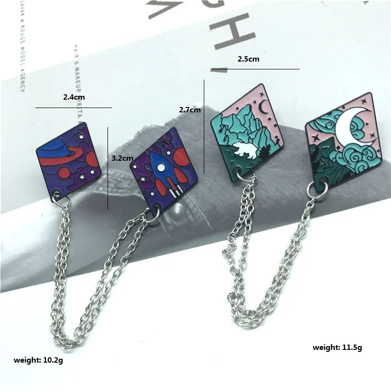 Новая Двойная Цепочка с брошью rocket planet серия mountain river серия брошь значок фантазия пейзаж ночь значок ювелирные изделия деним