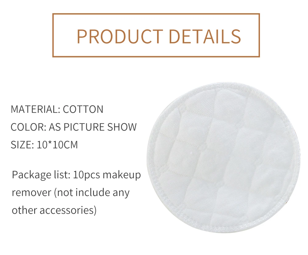 10 шт. многоразовые ватные диски, моющиеся подушечки для снятия макияжа, мягкий очиститель для лица, чистящие салфетки для лица Инструменты для ухода за кожей для женщин