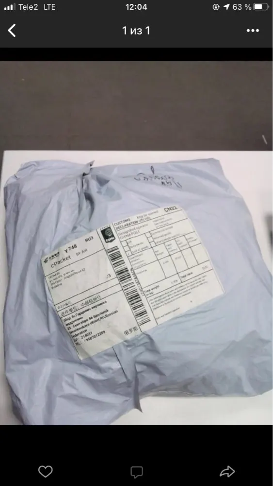 Страна: RU Color: White Ships From: China Доставка: Cainiao Super Economy 08.03.2021