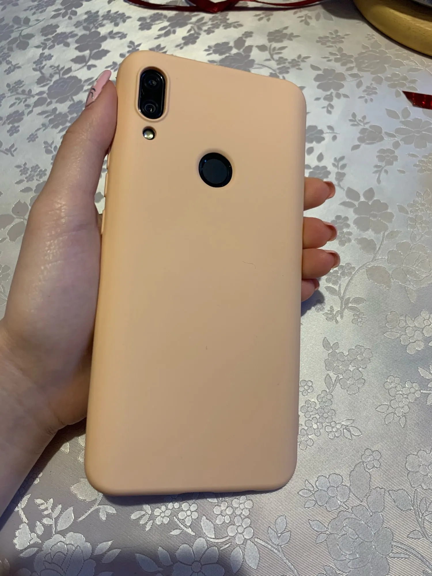 Чехол как на фото. Со временем он теряет цвет, но очень прочный и хорошо покрывает мобильный телефон.