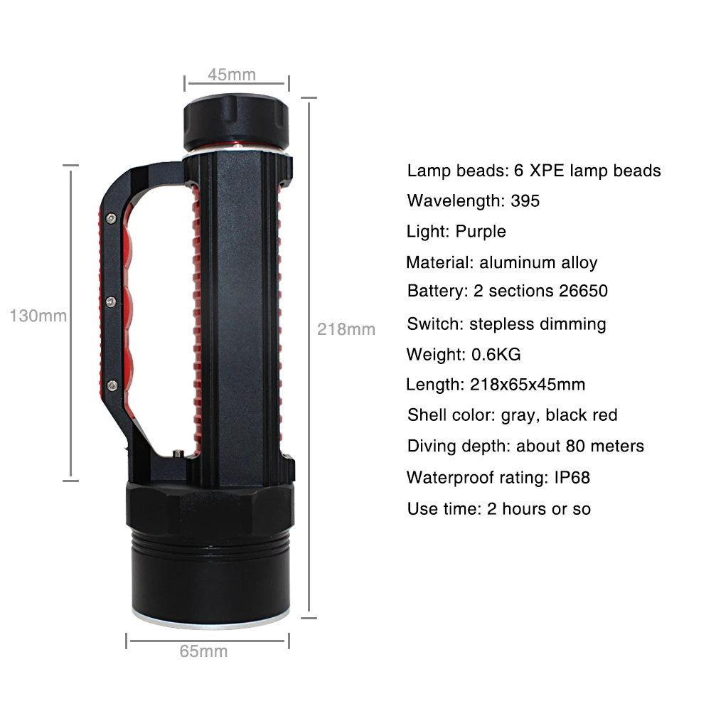 Светодиодный УФ-светильник онарик Uranusfire 6 xpe для дайвинга, водонепроницаемый Ультрафиолетовый светодиодный онарь для подводного плавания, 395 нм
