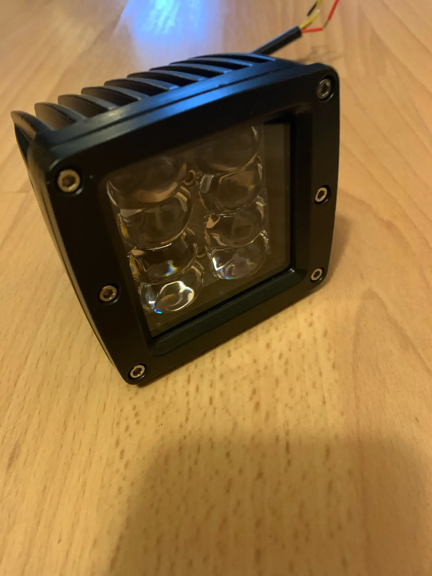 Отличная фара, всё как в описании. Пришла в Мурманск за 8 дней. Доставка из РФ. Герметичная, провода сечением 0.75мм, два режима (стробоскоп и непрерывное горение).Полностью металлическая,мощный радиатор отвода тепла. Светит классно, четкие границы света. Поставил на квадрик. Покупкой доволен.