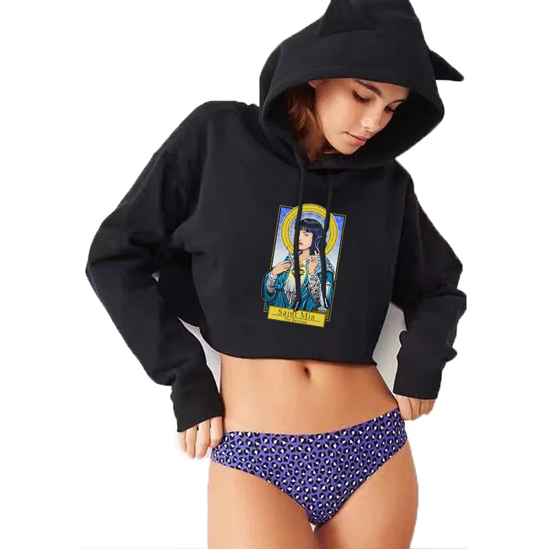 Винтажные толстовки криминальной фантастики, Женские Смешные Толстовки в стиле Харадзюку с изображением Квентина Тарантино Миа Уоллеса, топы, Модный укороченный топ с капюшоном