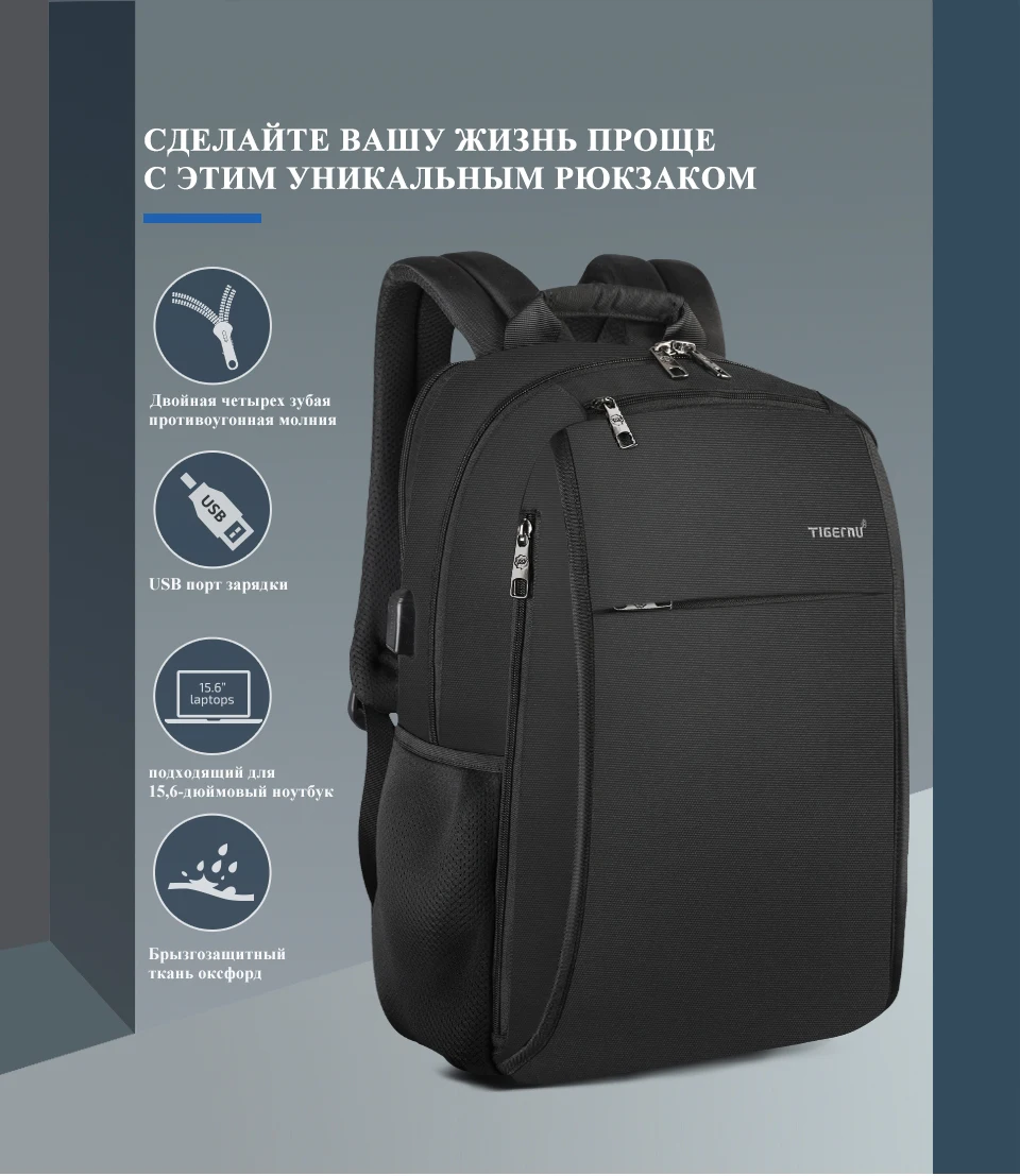 Рюкзак Tigernu новый анти-помогает бороться с модные 15,6 дюймов рюкзак для ноутбука для мужчин Водонепроницаемый Материал с 4.0A USB зарядки Порты и разъёмы Дорожная сумка на каждый день