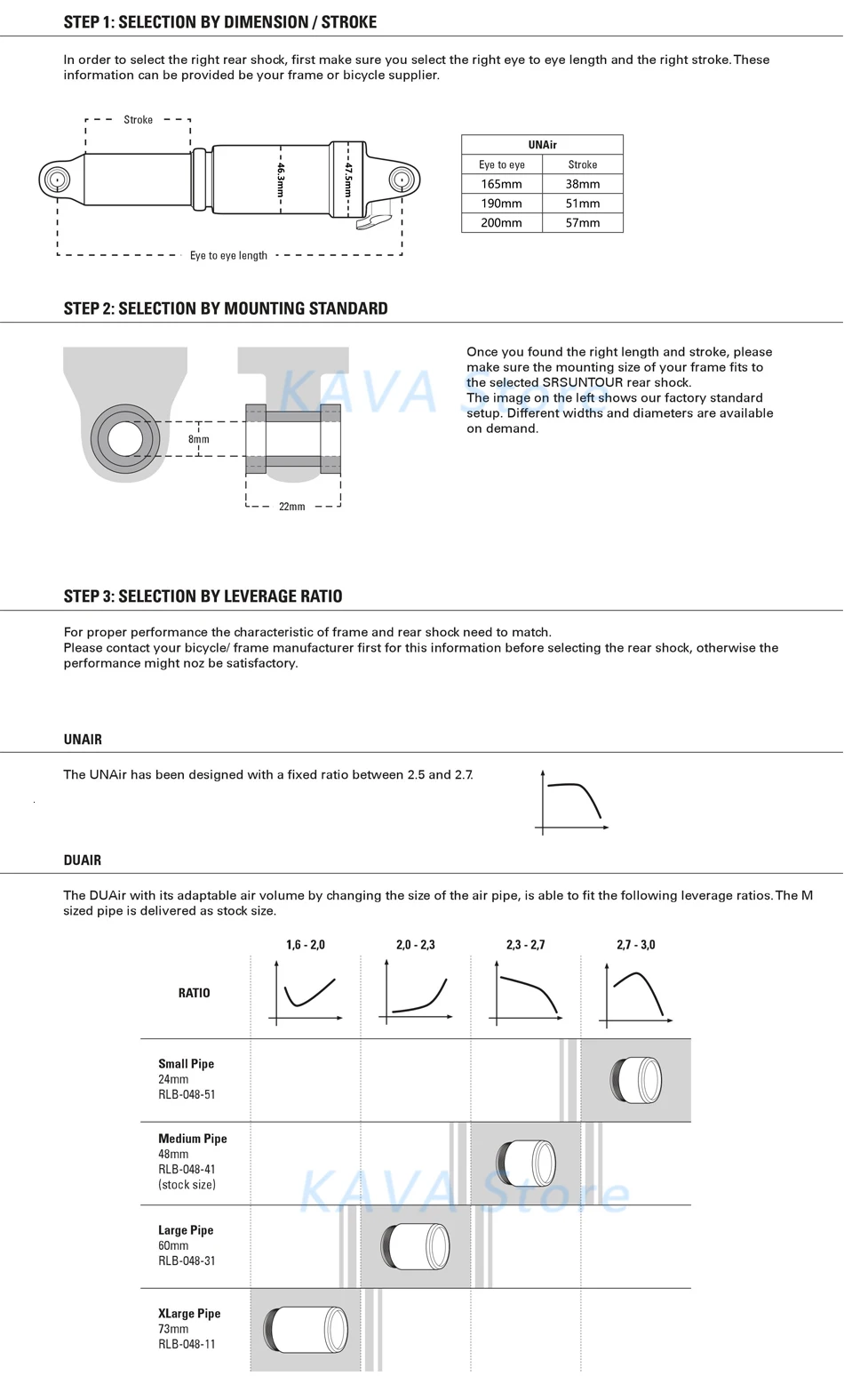 Бренд: SR SUNTOUR Цвет: черный Вес: 165 мм (6,49 дюйма) , 256 г (0,56 Ib) 190 мм (7,48 дюйма) , 279 г (0,61 Ib) 200 мм (7,87 дюйма) , 290 г (0,63 Ib) Регулировки: фиксированный отскок/блокировка/Регулировка высокого давления/Пневматическая Пружина Стиль езды: XC / AM Высококачественная поверхность. Доступные размеры глаз на глаз x путешествия: 165x38 мм (6,49x1,49 дюйма) 190x51 мм (7,48x2,00 дюймов) 200 × 57 мм (7,87 × 2,24 дюйма)