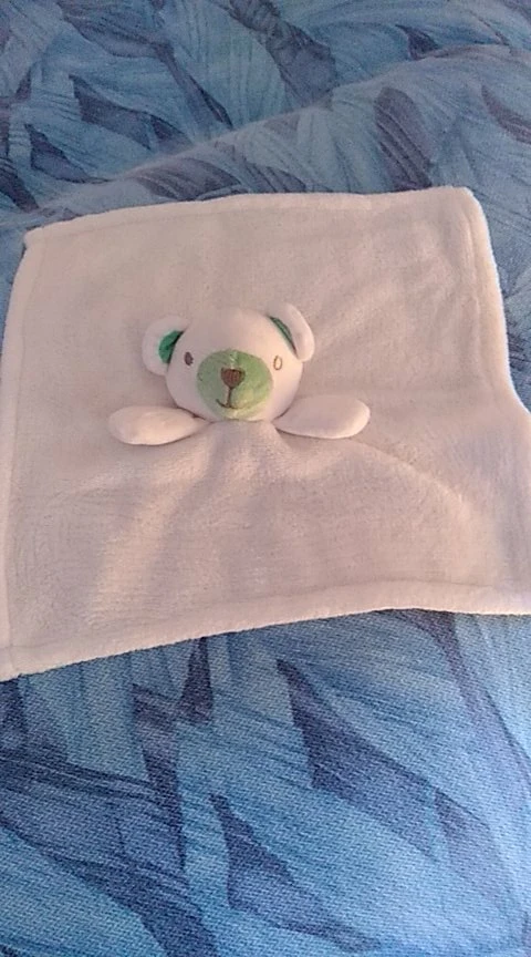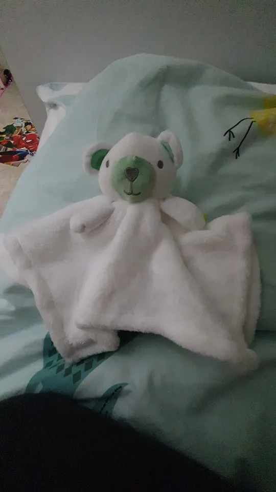 На изображении, который вы не оценили хорошо, выглядит как весь белый плюшевый мишка, области носа и внутри ушей, блестящий зеленый. Остальное отлично, но я купил его, думая, что он полностью белый. Кажется, что товар не имеет плохого качества.