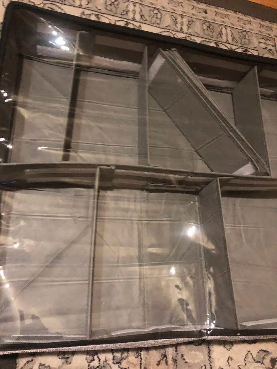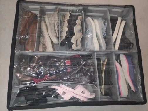 Очень крутая вещь. Заказала сразу 2 штуки. Продавец прислал по отдельности. Места занимает меньше в разы, чем хранение обуви в коробках. Качество тоже ок. Единственное, укрепила дно картонками, чтобы конструкция была более жёсткой.