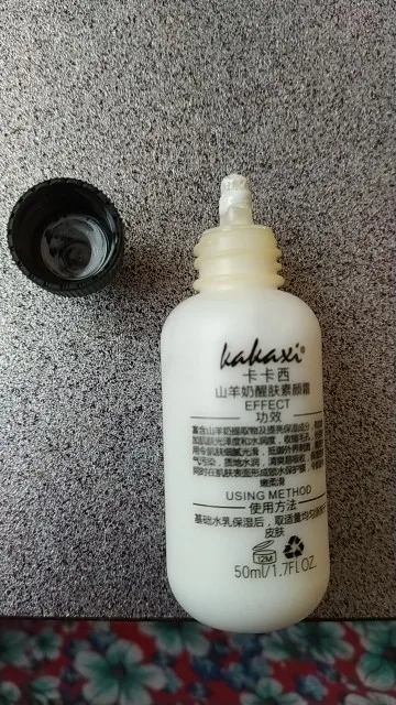 крем пришёл быстро, недели за 2-3. кожу осветляет, всё как в описании. немного смутило, что сам колпачок желтоватый (прикрепляю фото).