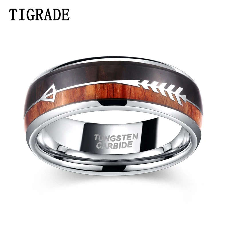 Вольфрамовое кольцо Tigrade 8 мм для мужчин, обручальное мужское обручальное кольцо t серебряного цвета, деревянный дизайн со стрелками, купольный стиль, размер 6-13 для Mal