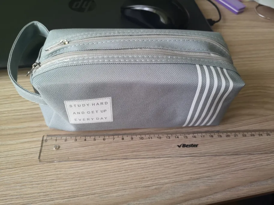 То, что я давно искала в магазинах города! Нужен был пенал, в который поместятся и ручки, карандаши, и текстовые выделители, а у меня их много. На фото для наглядности 9 выделителей в одном из двух отсеков и еще 2-3 поместятся, если захотеть (ну или клей-карандаш)) Я более чем довольна. Более того, пенал не короткий, помещается линейка 20см (более длинные уже не поместятся). При всей своей вместительности пенал не выглядит громоздким, в том числе за счет своего цвета - нежный персик. Цена - 93руб! Доставка около 2 мес. Одна из самых удачных моих покупок на AliExpress! Спасибо!