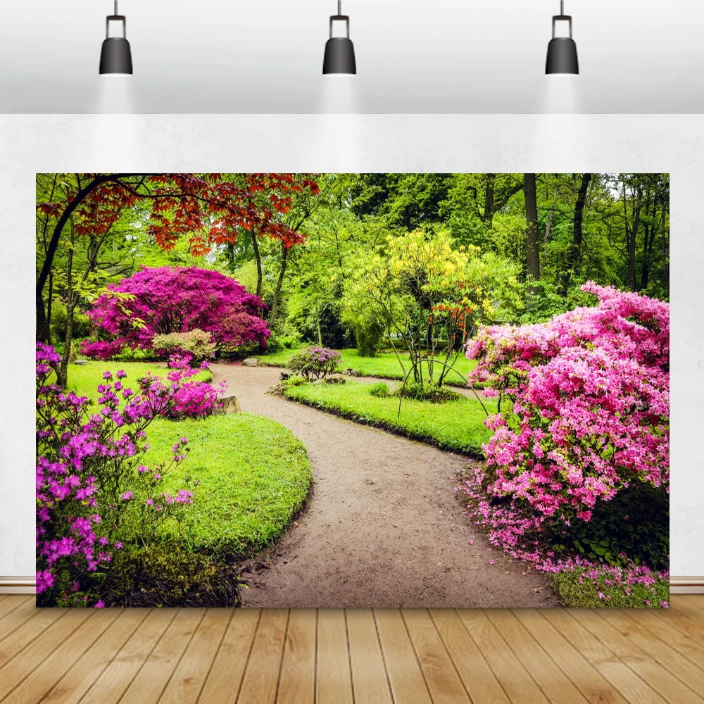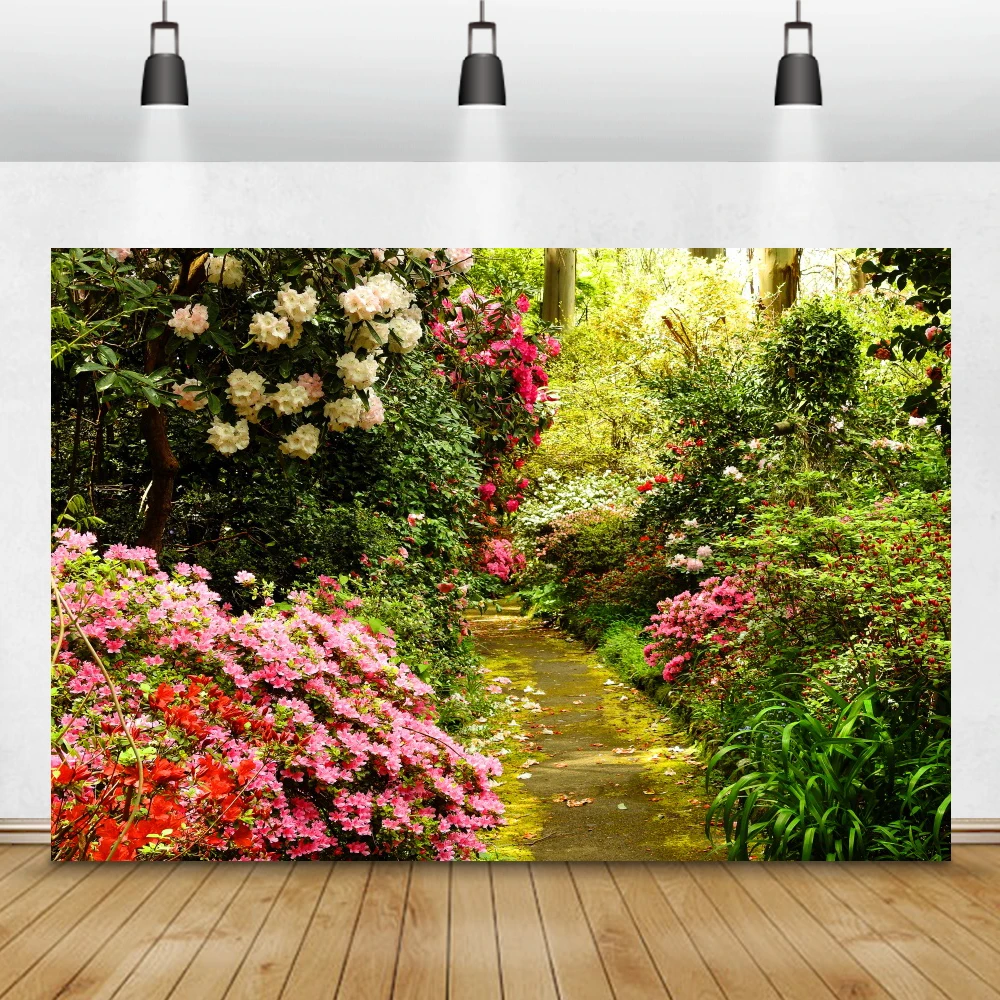 Laeacco Весна живописный сад цветок с кисточкой, с цветами зеленая лоза дорога фото Фон фотографии фотосессия Фотостудия