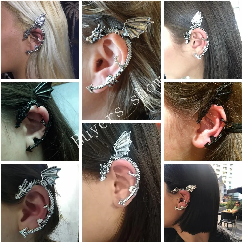 Серьги-каффы в готическом стиле, винтажные женскиемужские серьги-клипсы с ушками дракона в стиле панкрок, без прокола пирсинга