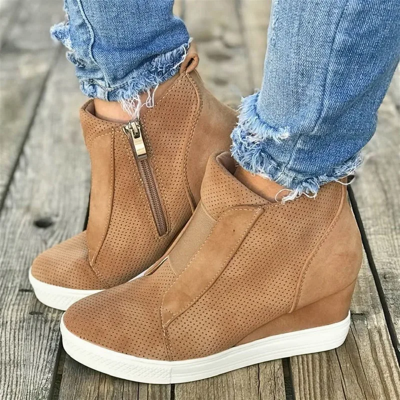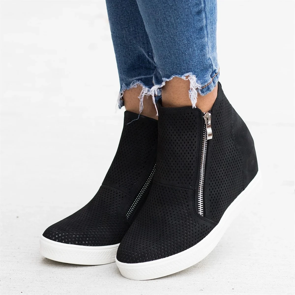 Женские кроссовки на платформе SHUJIN, повседневные дышащие кроссовки на вулканизированной подошве, на молнии, для отдыха, 2019
