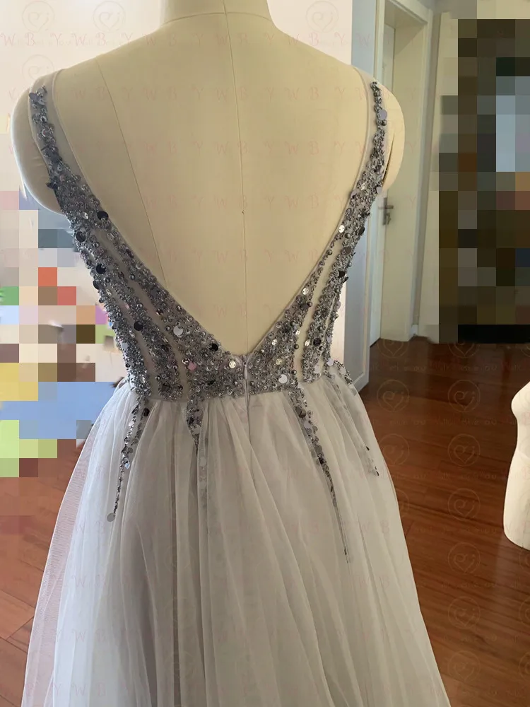 Платье женское ТРАПЕЦИЕВИДНОЕ с V-образным вырезом, пикантное Тюлевое вечернее платье с высоким разрезом, с открытой спиной, элегантное платье для выпускного вечера, 2021